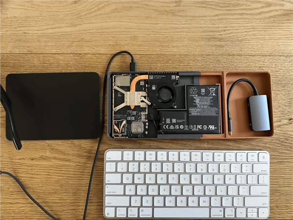 在这个项目中,“Michaelthatsit”首先将Steam Deck的内部组件,包括主板、电池等核心硬件,从原有的掌机外壳中小心翼翼地取出。随后,他利用3D打印技术,定制了一个全新的外壳,并将这些硬件巧妙地安置在苹果妙控键盘的下方。这一设计不仅保留了苹果妙控键盘的原有功能,还为其赋予了全新的游戏性能。